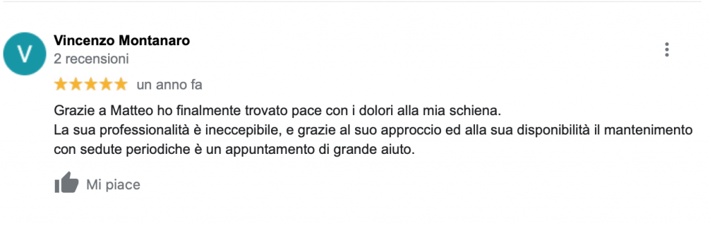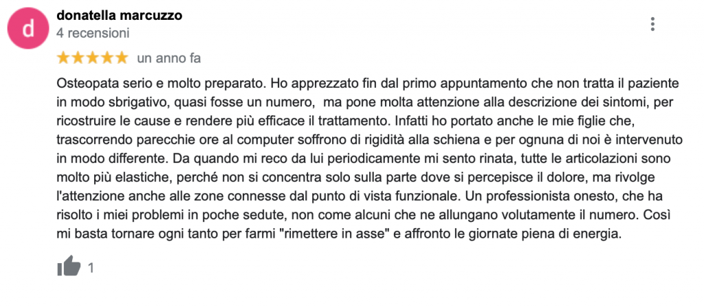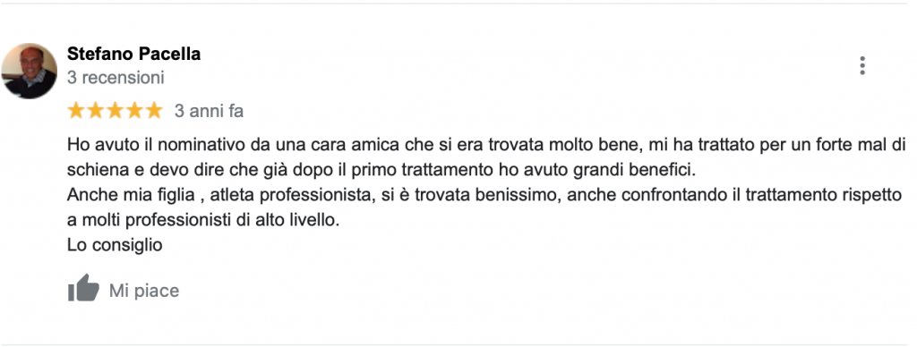 Il mio trattamento osteopatico si differenzia dagli altri proprio per questa motivazione, non mi concentro sul punto del dolore, ma vado all’origine per poter guarire in maniera definitiva e non avere recidive.